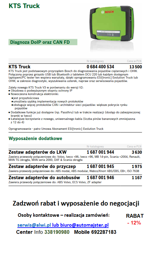KTS Truck wersja OHW 0684400534 V3 13660 pln cena brutto