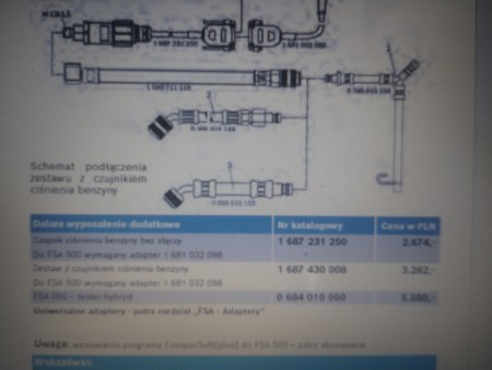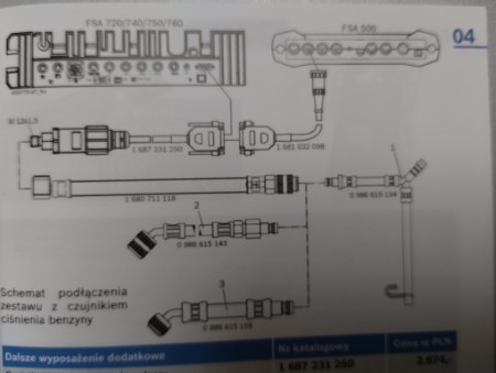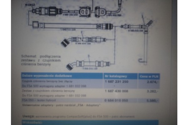 - 1 687 231 250 (do FSA 500 wymagany adapter 1 681 032 098) Zestaw z czujnikiem ciśnienia cieczy 1 687 430 008 (do FSA 500 wymagany adapter 1 681 032 098